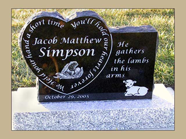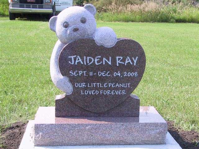 Our infant memorials come in a wide variety of shapes, styles and colors. Teddy bears, baby blocks, heart shapes and actual foot print replica’s are just some of the options available. The infant memorial can be customized to reflect the precious little one that it represents.